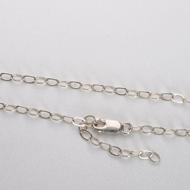 • 18" .925 sterling silver heavy chain made in Italy. You can hook into any link to shorten.