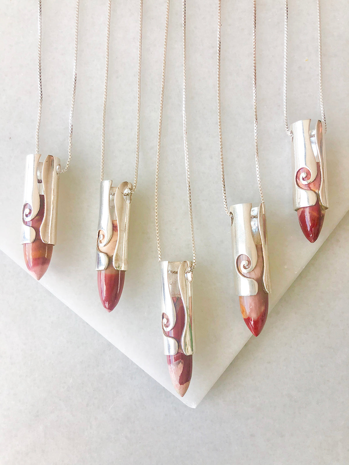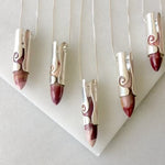 Lipstick that never runs out! Incredibly unique, each is slightly one of a kind. Such a modern piece that will have everyone asking about it! A great piece to be the bottom layer of your necklace stack. You can double the chain to wear short as it has a lobster clasp at back. You can also slide off the chain & use the chain with your other pendants!