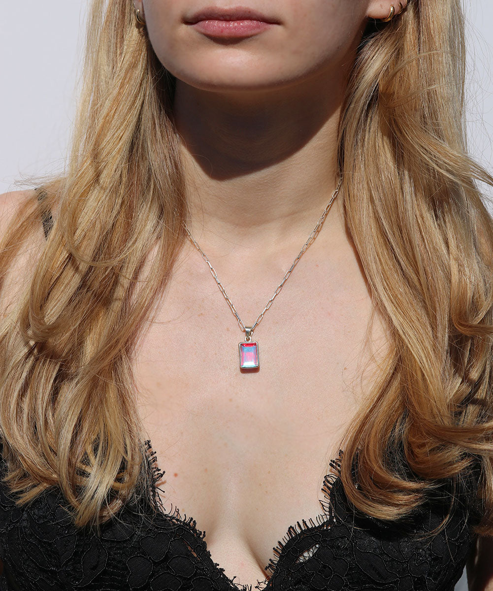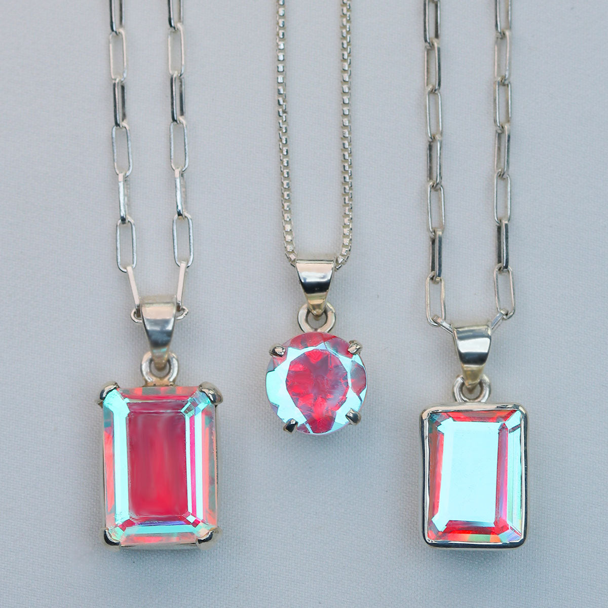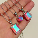 Mystic Topaz is so mesmerizing, filled with a rainbow of colors! This beauty is faceted to catch the light & changes color with every angle. Each is the same stone, and can look blue, orange, yellow depending on the angle!
