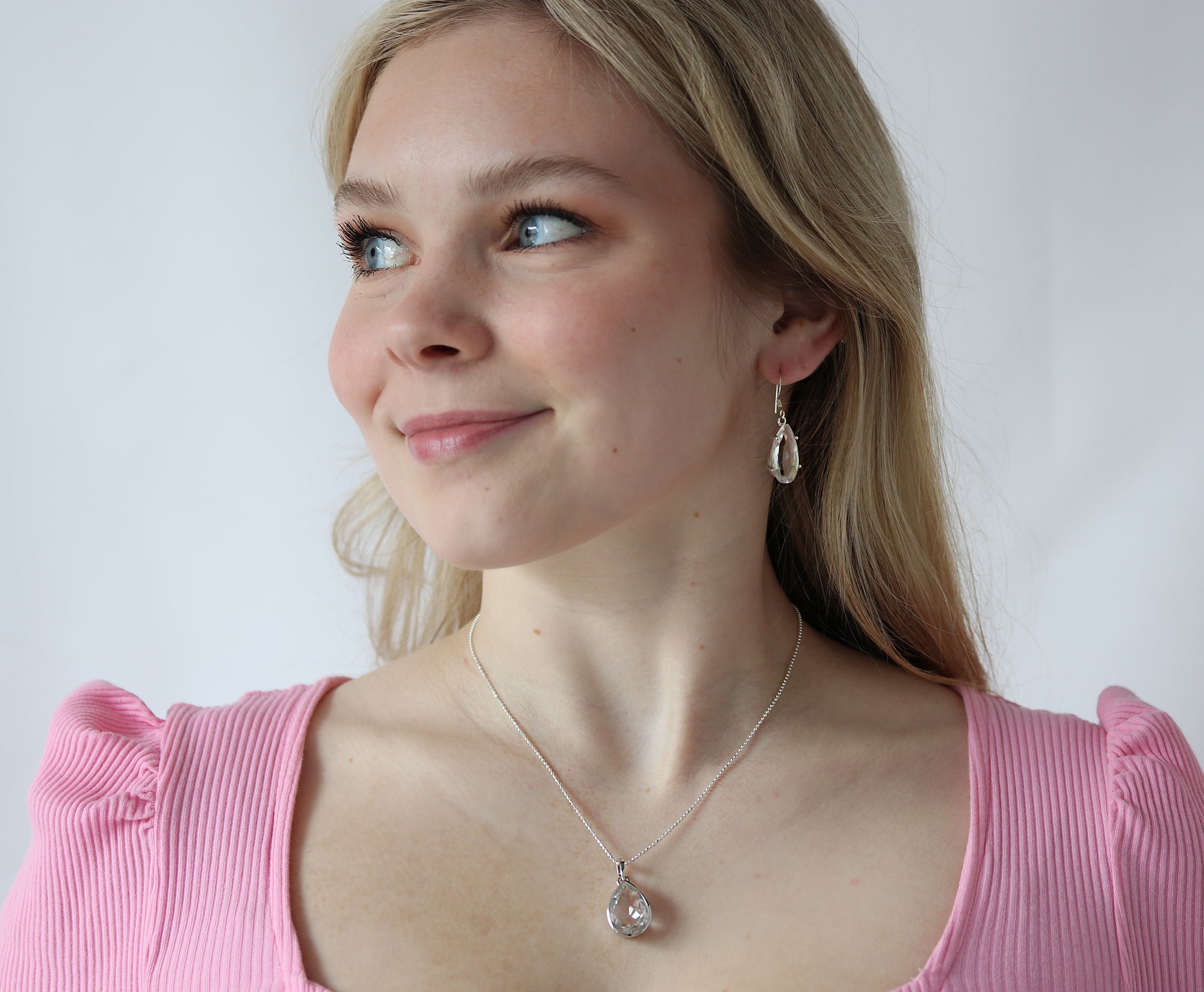 • Natural clear quartz, faceted for high shine