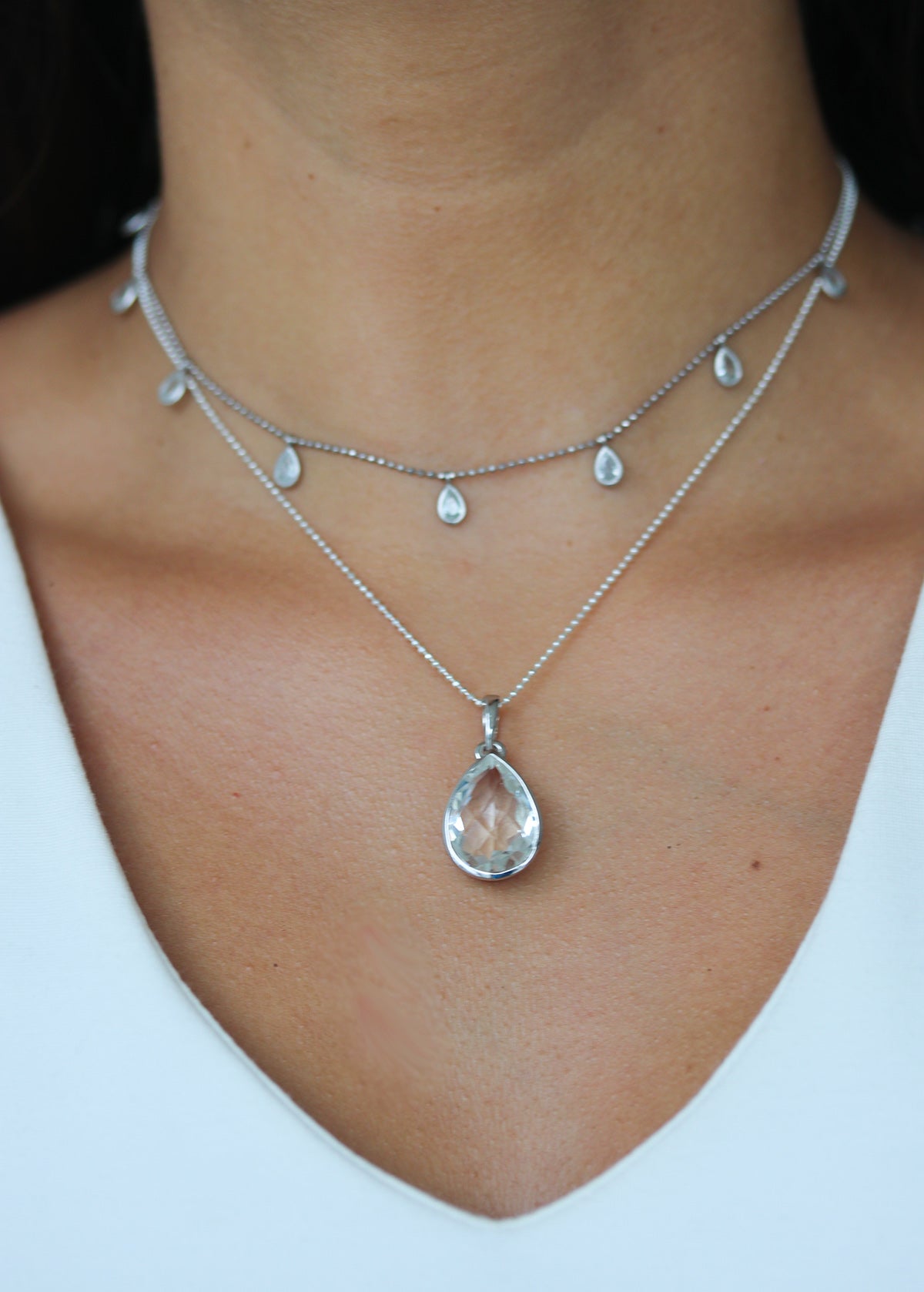 silver quartz dainty stunner necklace 925 sterling silver