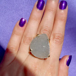Druzy is natural glitter formation on the top of this quartz. These are raw one of a kind crystals. Each metal band is custom made to fit each stone, and they are adjustable to fit.