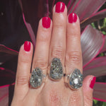 These sparkly pyrites filled with natural cube and glittery druzy crystal formations create their high shine! These pyrites are from Tibet, and the entire group is from the same mine pocket. I chose each stone, one by one, to get you the best of the best! Each piece of pyrite is unique, so I added videos of each size group so you can choose your exact stone. Once an option is sold, it can never be recreated, as in nature. Each stone has a custom made strong bezel setting to perfectly secure the stone. Pyrite are the perfect neutral for everyday, and pair well with other rings on your hand. You won't be able to take your eyes off their unique sparkle!