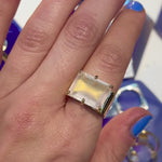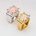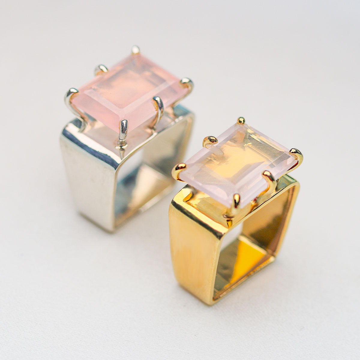 We're OBSESSED! Rose quartz is a love stone that promotes self love & brings more love to you & amethyst is a healing stone for prosperity. And a square ring band is not only modern but surprisingly comfy! When your fingers swell it doesn't feel tight either as the square shapes gives more room in the sides of the ring!
