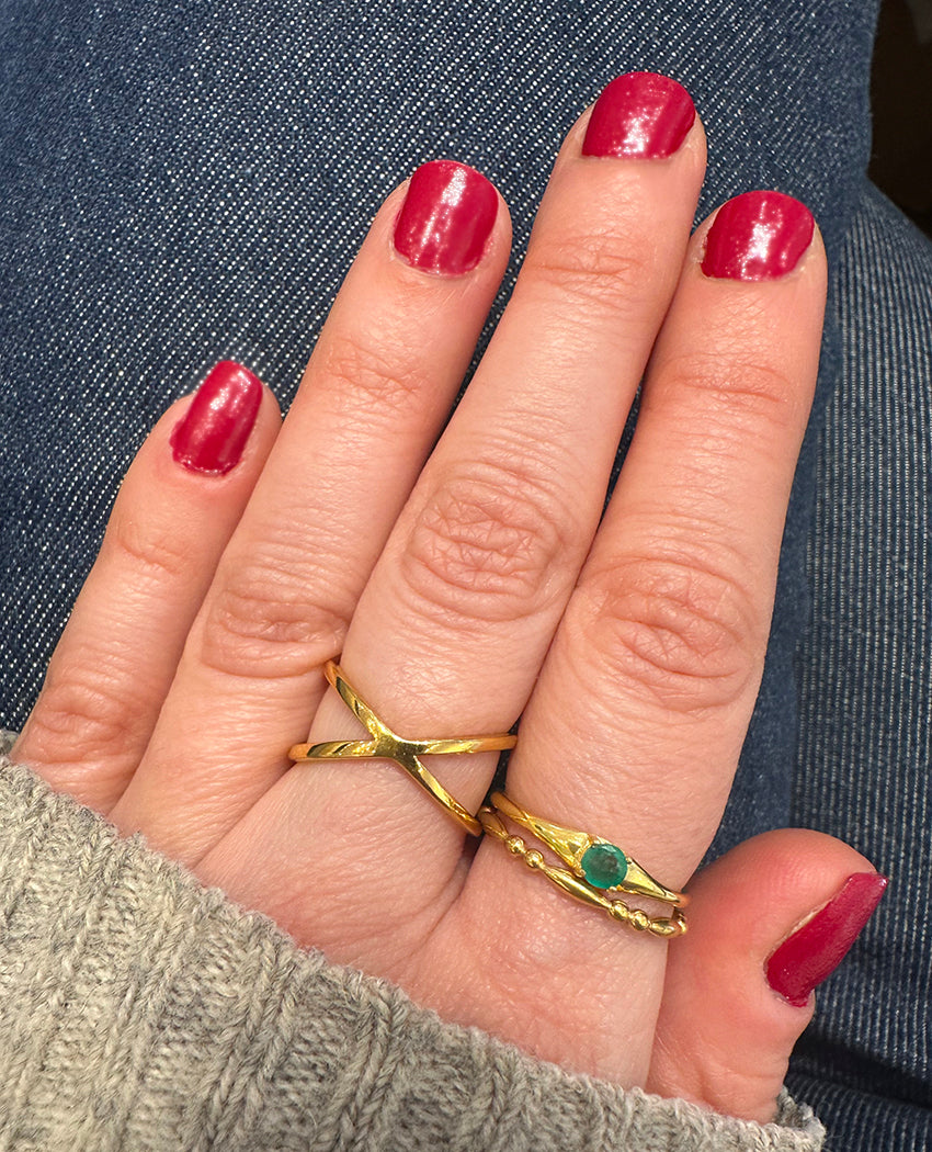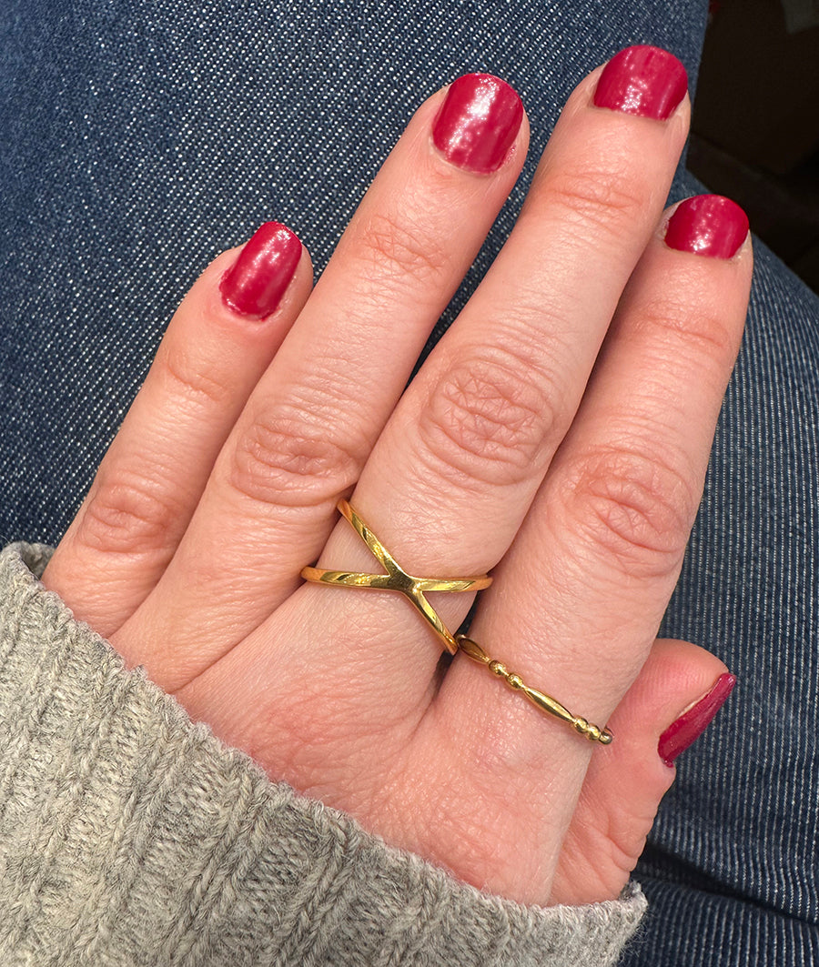 Chic, modern, high shine, stackable and waterproof for everyday! You will love how this adds a 3D modern twist to all your ring stack looks!