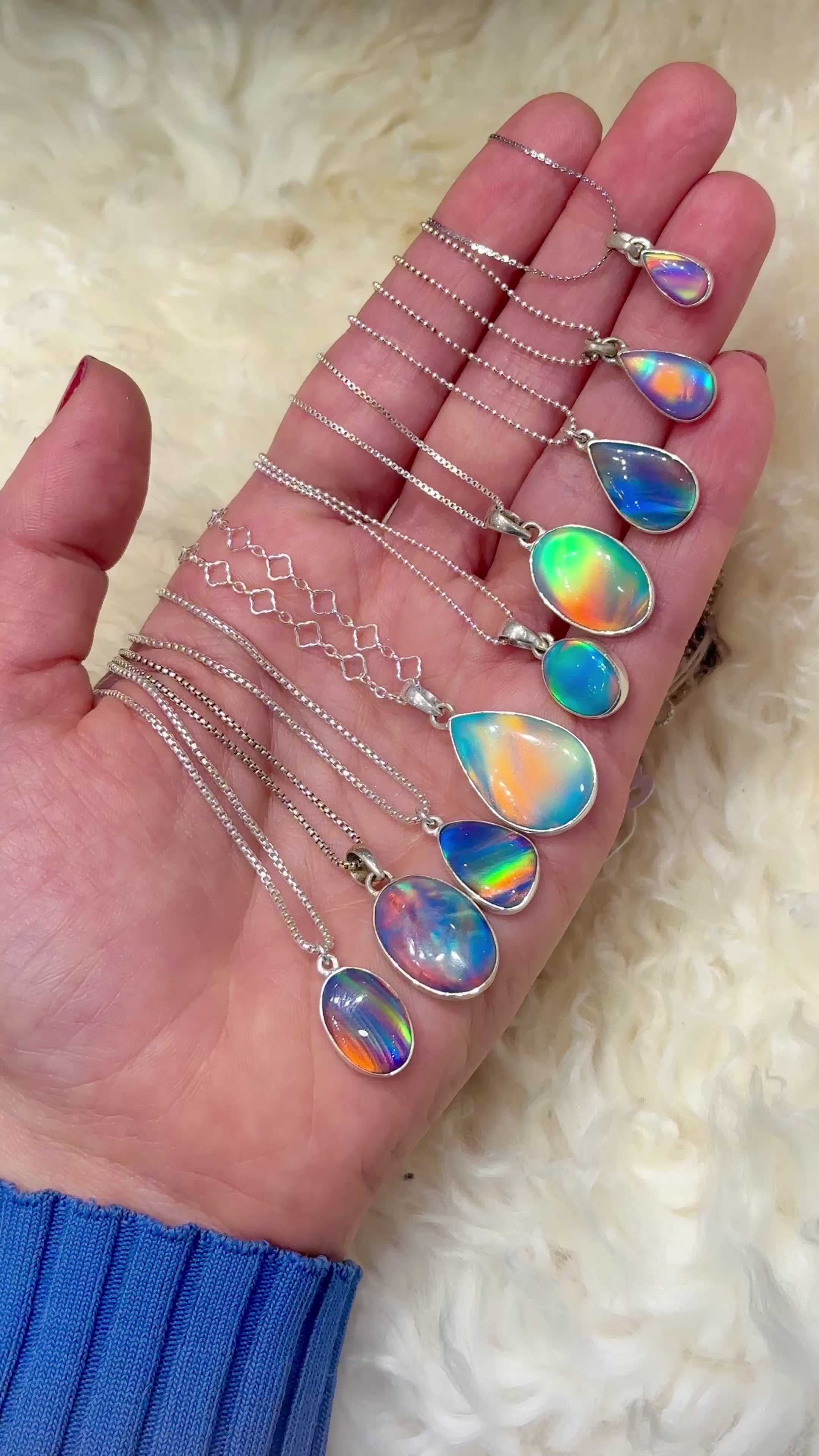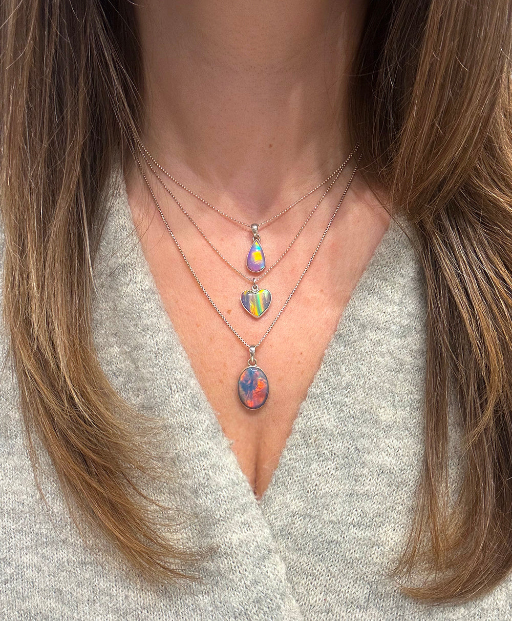 We are completely mesmerized by our collection of sterling opals! Each pendant is one-of-a-kind, making each necklace uniquely your own. Once it is gone, you will never see another opal quite like it!